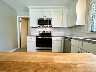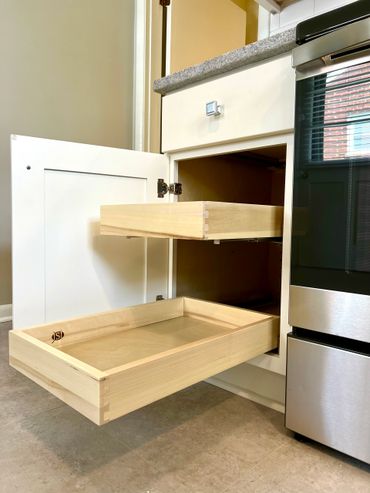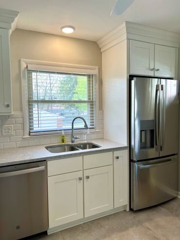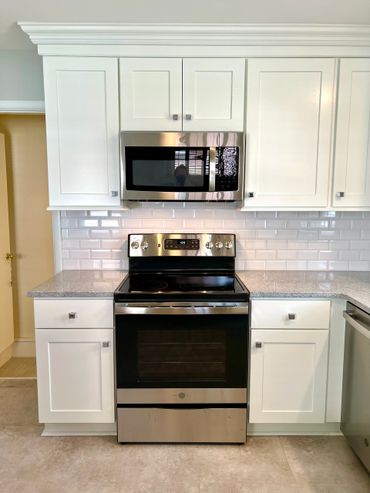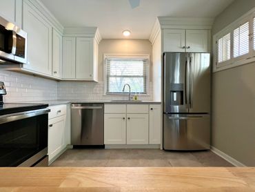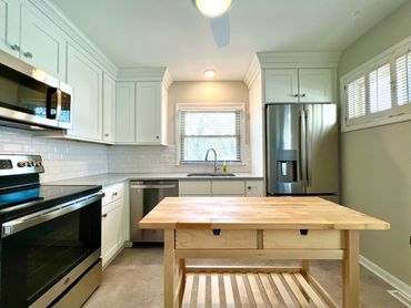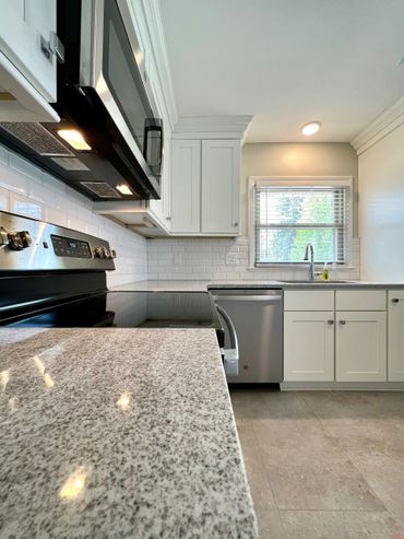 A smaller kitchen doesn't mean you have to sacrifice on functionality and luxury. This completely renovated space shows that being innovative with your storage solutions offers both function and luxury. The use of full height upper cabinets, pull-out trays (great for pots and pans), a refrigerator cabinet, upper corner cabinet and a portable island were also key to the success of this kitchen.